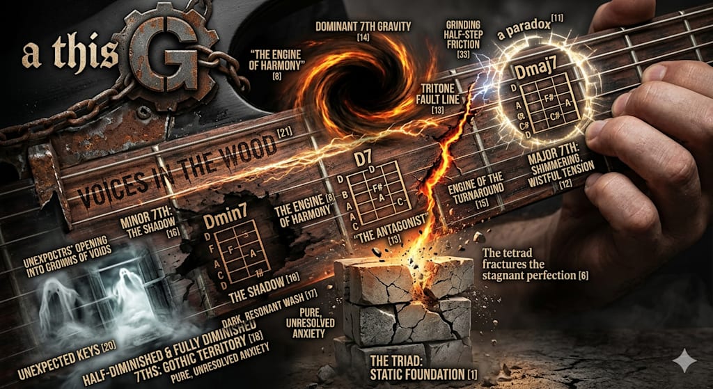 By stacking that fourth voice—the seventh—above the root, third, and fifth, you breathe life into the architecture. You introduce friction. You introduce gravity. The 7th chord fractures the stagnant perfection of the triad and turns a static structure into an active verb. It no longer just sits; it pulls, it twists, it demands motion.