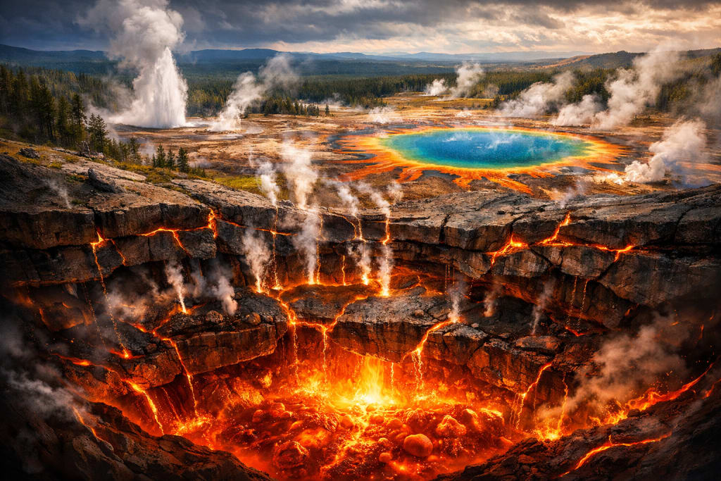 Hidden beneath the beautiful landscapes of Yellowstone National Park lies one of the most powerful geological systems on Earth. Famous for its geysers, hot springs, and colorful thermal pools, Yellowstone is not just a national park—it is the surface expression of a gigantic volcanic system known as the Yellowstone Caldera. Because of the immense heat, pressure, and gases trapped beneath the ground, scientists often describe this system as the world’s largest natural pressure cooker.