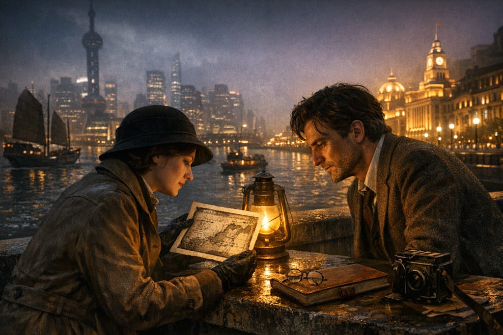 Dr. James Calder — Oxford, insufferable, demonstrably wrong about the provenance of the Dunhuang scrolls and absolutely unwilling to admit it — had apparently arrived in Shanghai three weeks before her, following, she could only assume, the same chain of evidence through the same succession of libraries and private collections and inconveniently dead scholars that had brought her here. The chain ended, as chains in this city tended to, at the waterfront. At a particular warehouse. At a particular man who had, according to the last letter in the series, seen the manuscript and would speak only in person and only to someone who could demonstrate sufficient knowledge to make the conversation worthwhile.