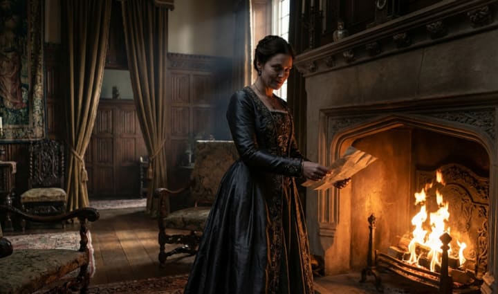 "The air in the room froze. Her husband stepped forward, but he didn't look at her. He looked at the letter lying on the small table—the letter she had been writing when the outsider arrived. With a slow, deliberate movement, he picked it up.
