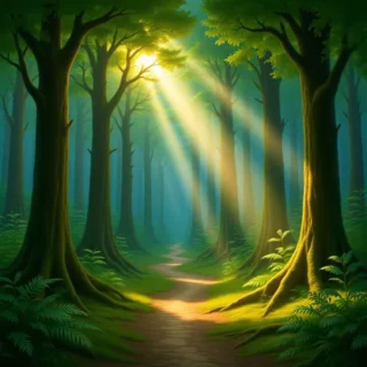 🌞 The light beckons to all visitors as sunbeams slip between the branches in slender, wandering paths, never quite choosing where to land. Some rest on a patch of ferns, turning them translucent; others skim across the bark of an ancient tree, revealing textures that look almost like a paradigm script. The light feels curious, tentative, hesitant in its exploration of the forest rather than freely illuminating it.