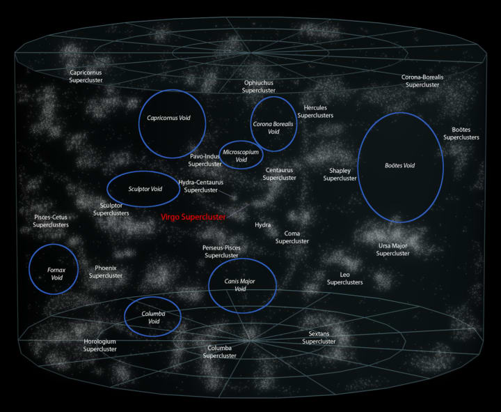 Far away, there exists an even larger region known as the Boötes Supervoid, one of the darkest places ever discovered.