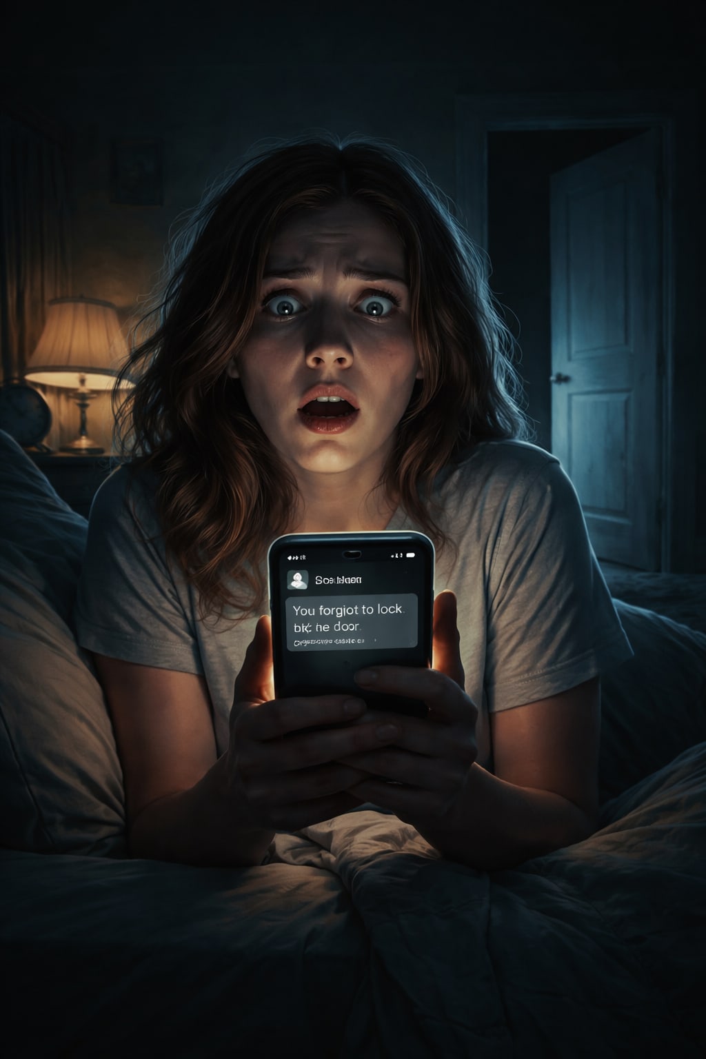 She stared at the message for a long time, waiting for her brain to decide whether this was a prank or something worse. She lived alone. She always locked the door. Always.