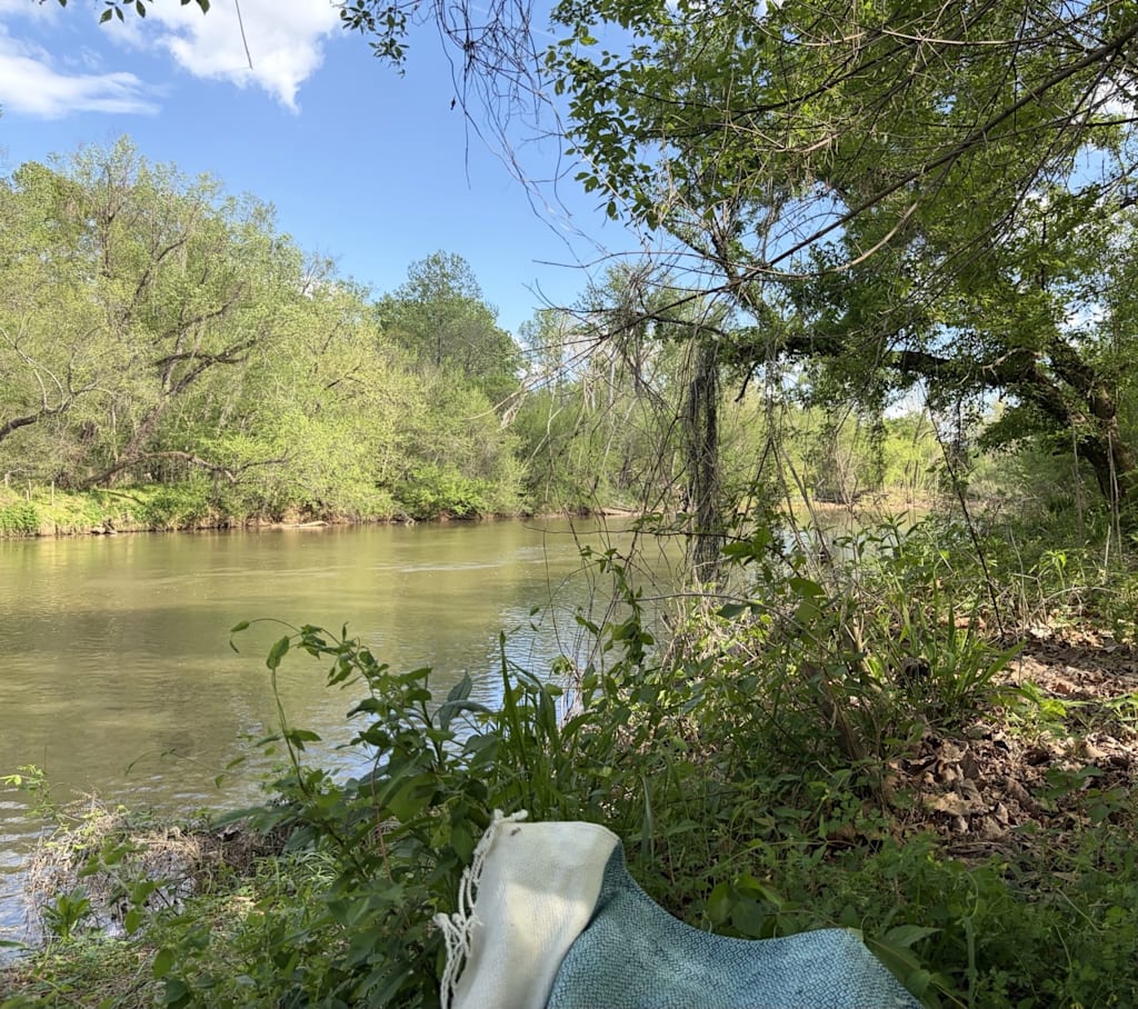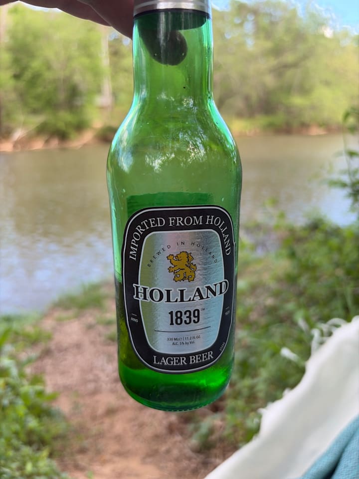 My husband came back with the dog, and we let him nose around the riverbank while we drank beer and enjoyed light conversation and laughter, always lots of laughter.