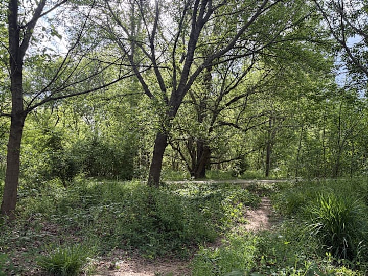 Today, we put a couple of beers, a quarter bag of multigrain chips, keys, phones, and a blanket in the wagon and took a stroll by the river. Chief ran off down the path, leash following like Mary’s lamb.
