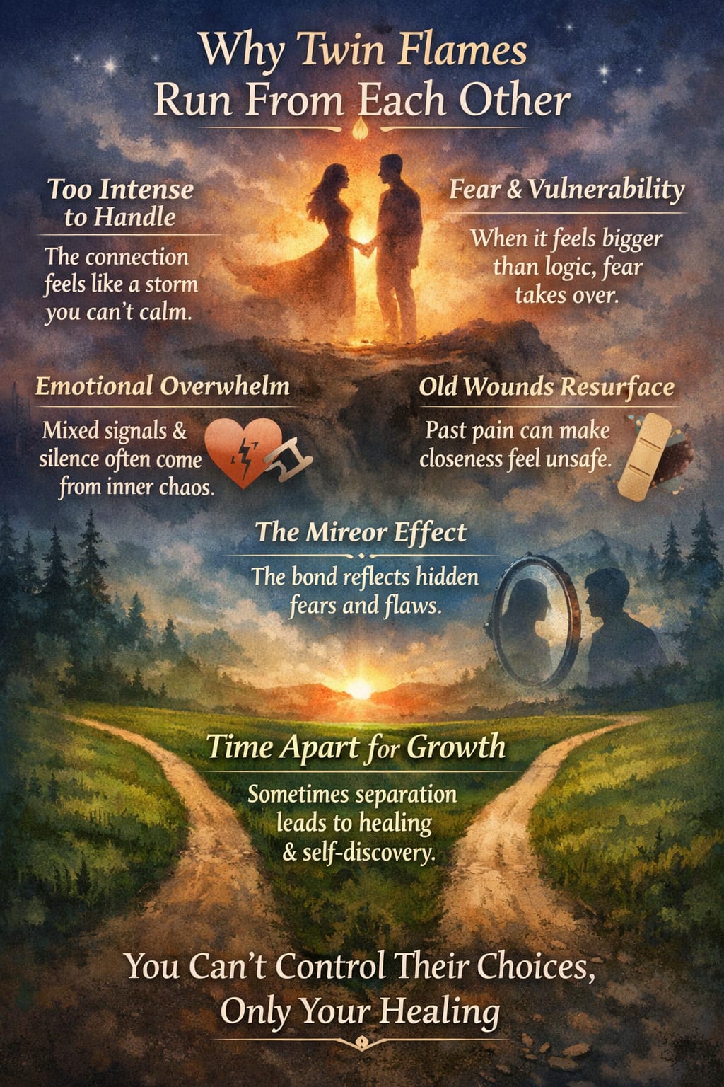 Twin flame connections feel magnetic and intense. That closeness can feel exciting but also frightening, like standing too close to fire that warms and burns at the same time.