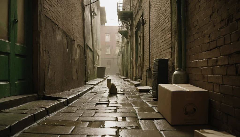 The alley behind the apartment building had long been avoided. It was not dangerous, not in the way one might expect. No one had been mugged there, no street fights erupted, and no flickering lights signaled a hidden threat. It was merely… unwelcoming. The paint on the walls peeled in stubborn, curling strips, and the garbage bins teetered on the curb as if daring anyone to disturb them. Stray cats claimed every corner, arching their backs at intruders and hissing when challenged. Even the air smelled of damp bricks and yesterday’s refuse, a mixture of rot and rain.