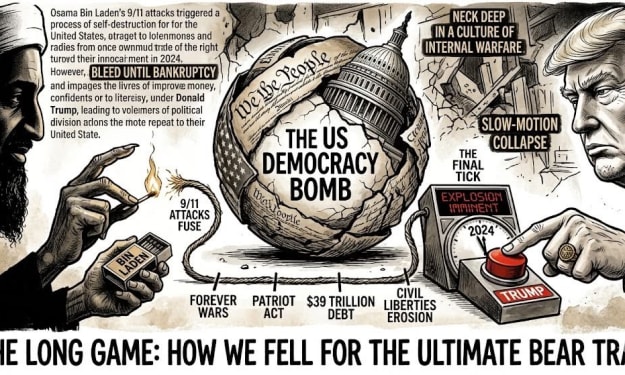 The Long Game: How We Fell for the Ultimate Bear Trap Pull over the car, grab the oxygen mask, and stare directly into the sun—because the "War on Terror" wasn't a war at all. It was a giant, neon-lit invitation to a suicide pact, and we signed it in blood and high-interest credit.