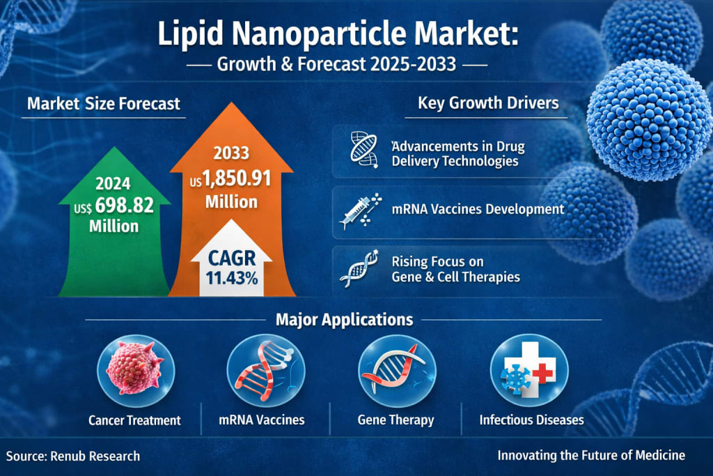 According to recent insights, the global lipid nanoparticle market is projected to reach US$ 1,850.91 million by 2033, up from US$ 698.82 million in 2024, growing at a strong CAGR of 11.43% between 2025 and 2033 . This remarkable growth reflects not just increasing demand, but a fundamental change in how modern medicine approaches drug delivery and disease treatment.